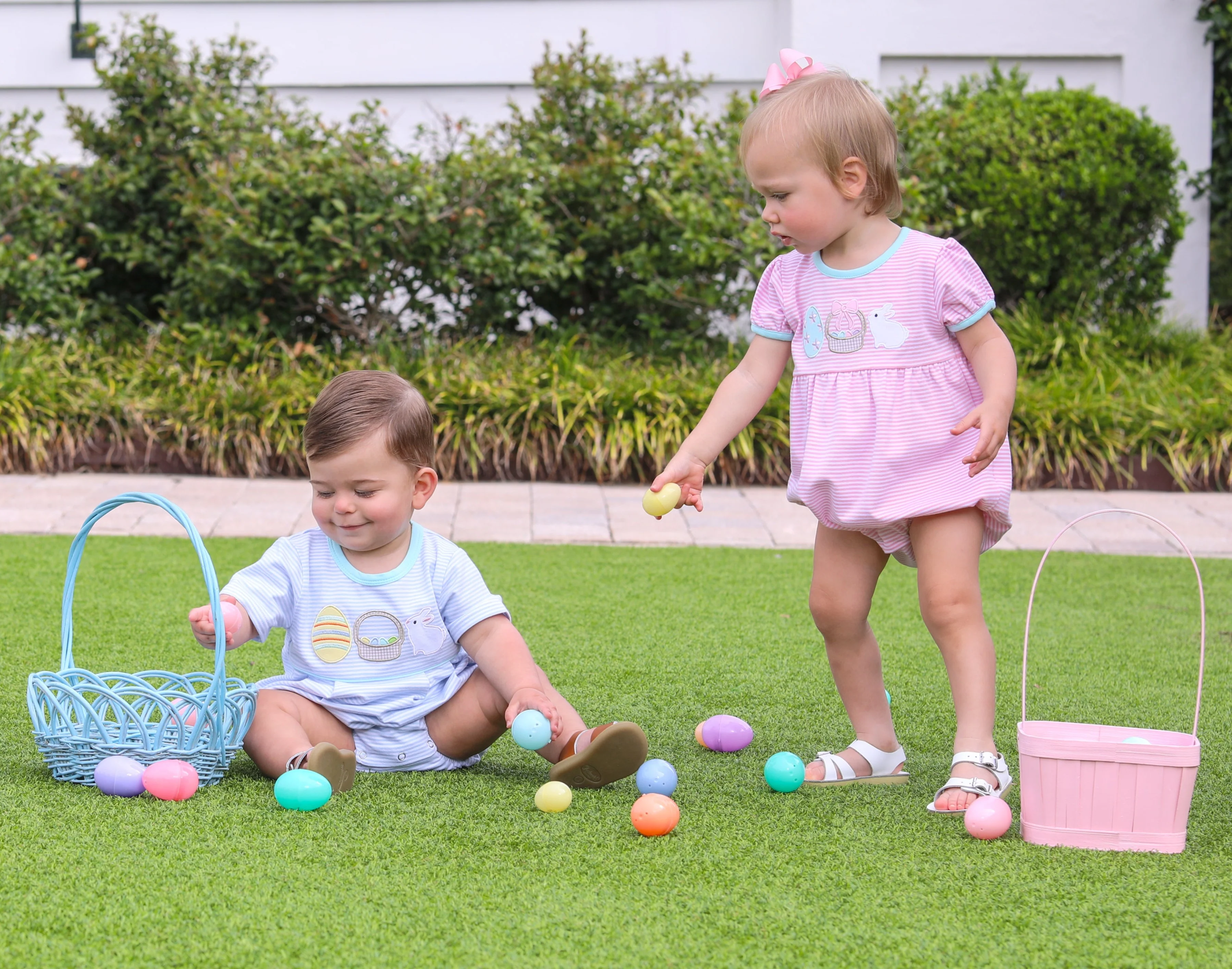 Bunnies and Baskets BubbleĀ Transform your little girl into the ultimate Easter egg hunter with our Bunnies & Baskets Dress! Featuring a playful bunny basket design and lightweight spring fabric, this Girls bubble dress from Trotter Street Kids is the perfect Sister set for your child's Easter celebration. Get ready for some serious egg hunting!